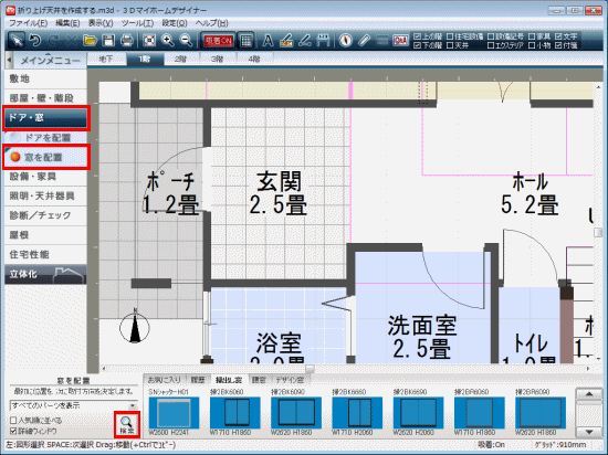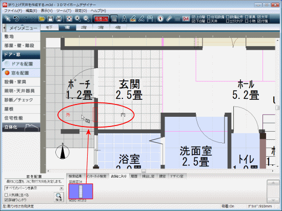 ガラスブロックは、データセンターからパーツをダウンロードして窓と同様に間取り画面で配置します。 ※データセンターをご利用いただくには会員登録が必要です。