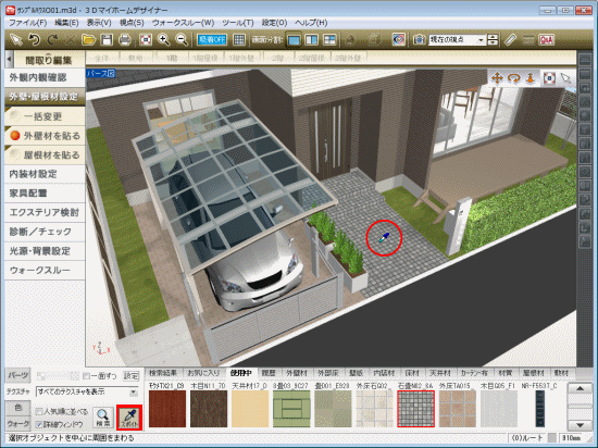 外壁や室内の壁に貼り付けられているテクスチャや色を調べるときは、「スポイト」機能を利用します。