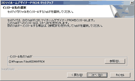 セットアップ中に上記のインストール先フォルダを選択する画面が表示されましたら、[参照]ボタンをクリックします。