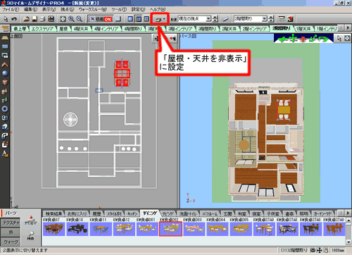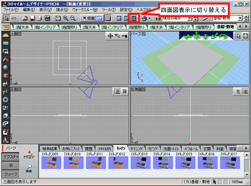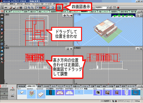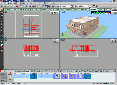 1.間取りでは「マンション見本から作る」を利用し1フロアの間取りを作成する。 2.1フロアの間取りを作成後、立体化し3D画面で1フロアのパーツとして保存します。 3.階層を作成します。5階だてなら5階建ての階層を多階層ウィザードを利用して作成します。 4.作成した各階層にパーツとして保存したフロアをパーツを配置するように配置します。