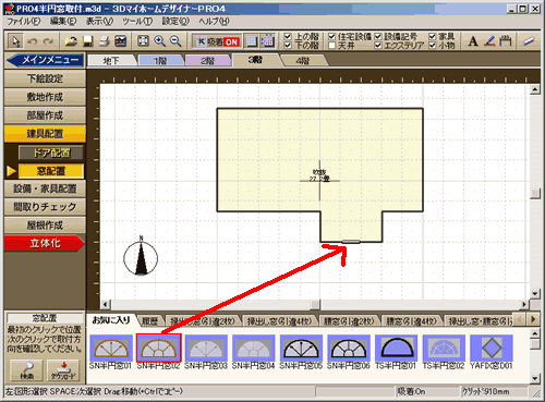 [3階]フロアタブに切り替えて、作業図面上で右クリックし、「貼り付け」を選択します。
