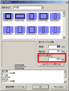 配置した窓をダブルクリックし、プロパティで「床からの高さ」を[-250〜0]で設定します。