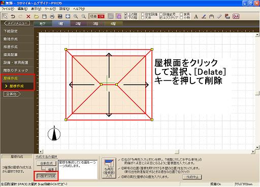 屋根をクリックしてキーボードの[Delete]キーで削除できます。