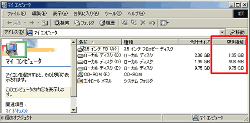 2.マイコンピューターを開きインストール先ドライブの空き容量を確認します。