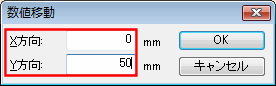 壁面の端に移動したい場合は、壁厚の1/2(初期設定では50mm)の数値を入力します。