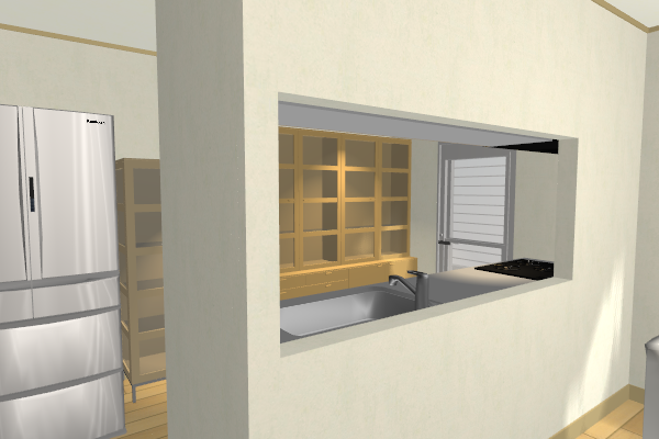 壁編集の[壁削除]、または[壁開口]を利用して、壁の角まで設定したとき、立体化すると下の図のように壁の角まで削除、または開口されます。
