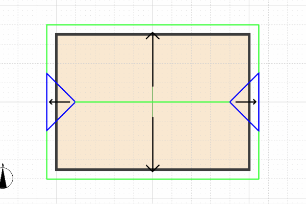 切妻屋根(作図例の緑色の屋根)から作成します。屋根の勾配と軒桁の高さを設定します。