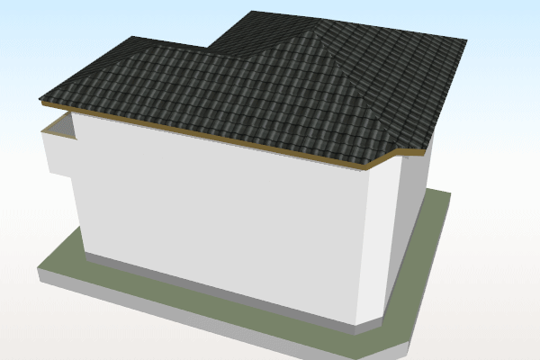 角地に建つ家をデザインする際、自動生成される屋根が斜線制限に引っ掛かるようなときに、「一面ずつ」作成を利用して、簡単に隅切り屋根に変更できます。