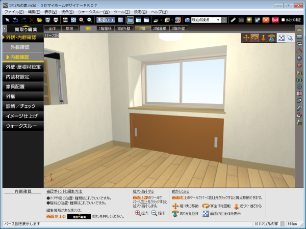 「造作出窓」機能で作成した出窓の下に収納を設置する方法です。