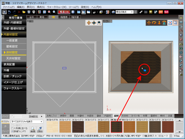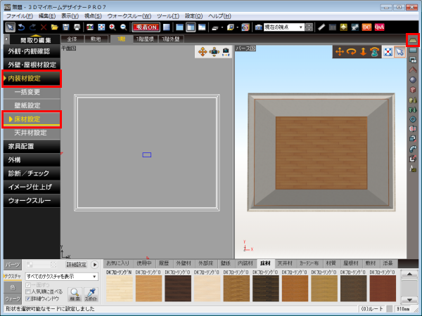 ナビの[内装材設定]―[床材設定]を選択します。