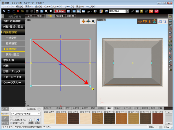 平面図でドラッグして、床面を作成します。