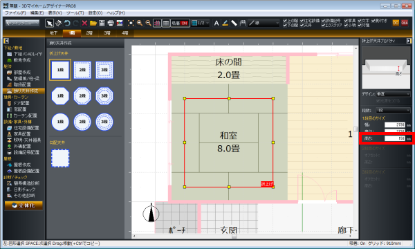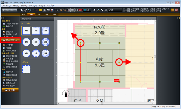 ナビの[飾り天井作成]を選択して部屋を配置します。
