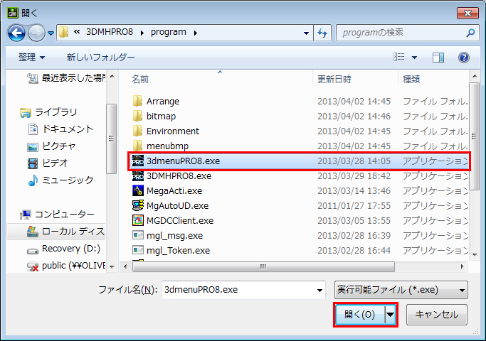 [インストールフォルダ]は、インストール時に変更していなければ、