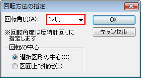 表示された[回転方法の指定]のプルダウンメニューから角度を選択するか、直接数値を入力して[OK]をクリックします。