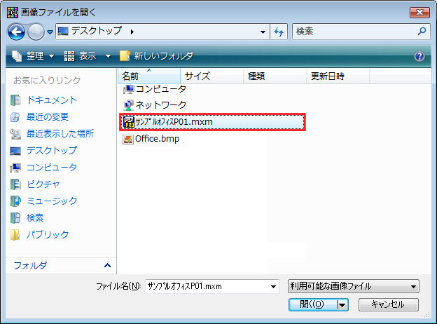 表示された[画像ファイルを開く]でイメージ保存したプレゼンボードデザイナー用メタファイルを開きます。
