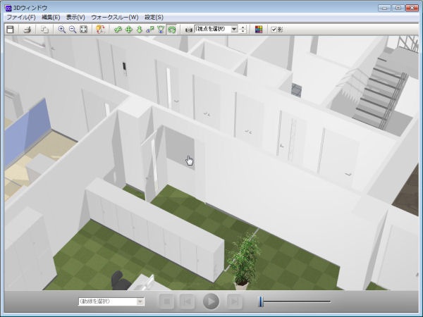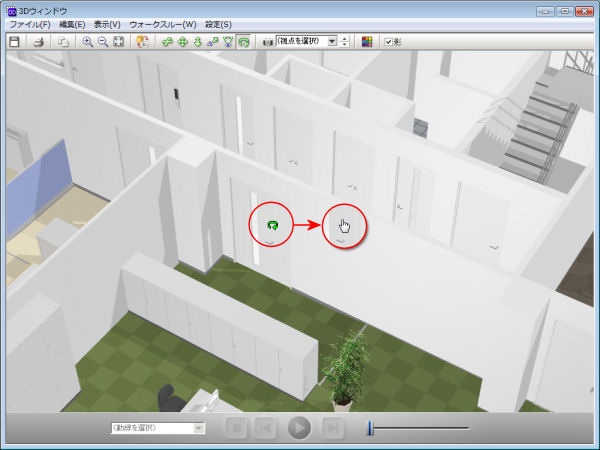3Dウィンドウを起動し、開閉したいドアや窓にマウスカーソルで[Shift]キーを押します。