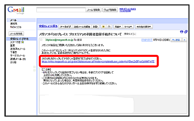 - 手順5で入力したメールアドレスに「利用者登録手続き」についてのメールが送られてきますので、メールソフトを開いて、到着したメールの案内に沿ってアカウント登録を完了させます。