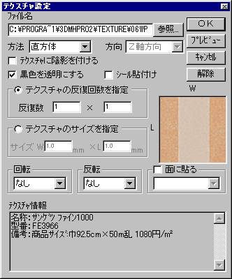 A @で作成した形状を選択状態にし、右クリック→「テクスチャ設定」を選択し、ファイル名(〜.MTB)をメモします。