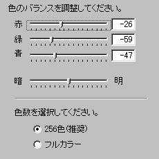 C その後は、ステップ6になるまで「次へ>>」ボタンを押し続けます。ステップ6で「色のバランスを調整してください」というところで色を編集できます。