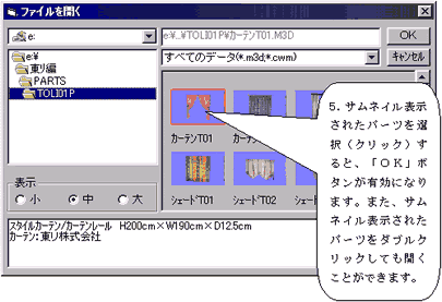 開きたいパーツを選択し、「OK」をクリックしてください。 |