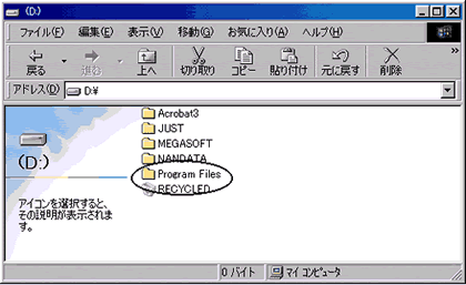 ![]() 上記画面はWindows98のマイコンピュータの画面です。 |