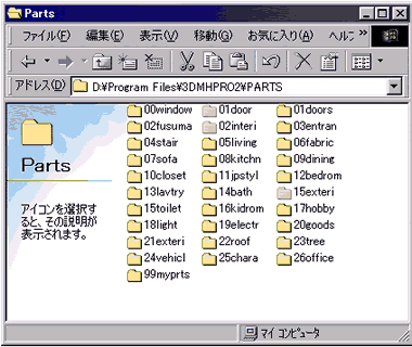 | 4. | パーツをハードディスクにコピーする場合は、今開いたウィンドウの中からコピーしたいメーカーのフォルダを探して、ダブルクリックします。その中のパーツフォルダをダブルクリックします。 |