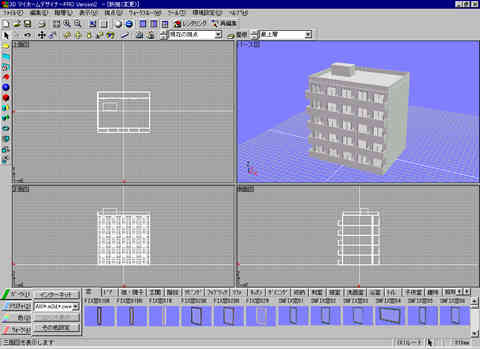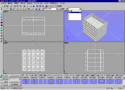 | 15. | 3F部分を選択して右クリックで表示されるポップアップメニューで「選択中の階層をリストに表示」からチェックをはずします。また、「パーツの配置」ダイアログボックスで[X][Y][Z]すべてに0を入力し、この作業を、5Fまで繰り返して行きます。 |