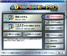 3Dマイホームデザイナーを起動し、作業メニューで、「3Dモデルを作る」を選択します。 |