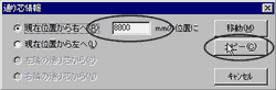 「通り芯情報」ダイアログボックスが表示されますので、現在の通り芯からコピー先までの距離を入力して、「コピー」ボタンを押します。 |