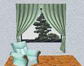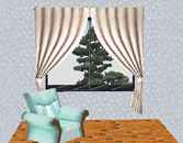 | 1. | パーツパレットの[ファブリック]タブの中の「張替カーテン01」を窓の手前に配置します。 |