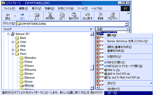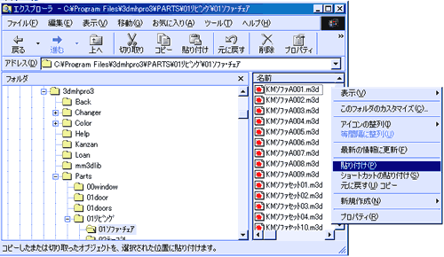 「フォルダの変更」画面で、CD-ROMドライブ「3dsozai」の中の「Parts」を選択し、「追加」をクリックします。 |