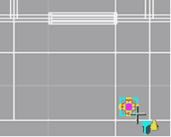 | 8. | 「前から見た図」または「横から見た図」で、四角形状の真中にあるピンクのハンドルをドラッグし、先ほど作った柱の上にくるように上部に移動させます。 ※ハンドルがうまくつかめない場合は、拡大表示にすると選択しやすくなります。 |