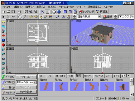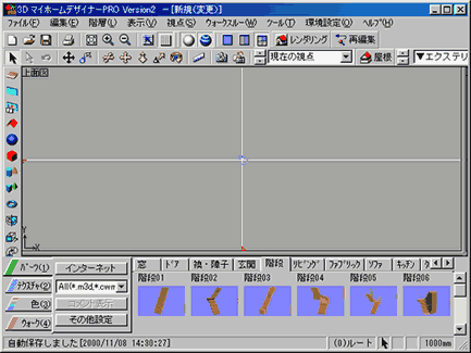 間取り図を立体化しても画面に家が表示されない。グレーの図面上に十字の白い線が表示されている。 |