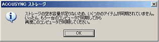 | 1回の同期データがストレージの容量を超える場合、同期の途中で以下のようなメッセージが表示されます。 |