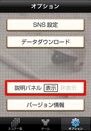| 2. | [説明パネル 表示 非表示]ボタンをタップして設定します。![]() |
