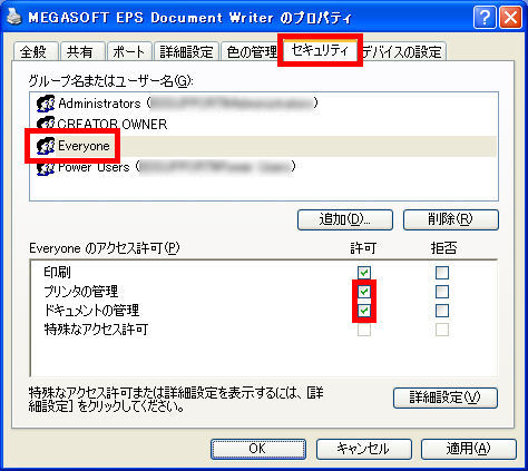 ※Windows XP HomeEditonでは、[セキュリティ]の機能がございません。 |