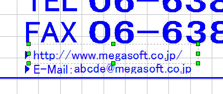 収録されているテンプレートを利用してチラシを作成する際、自社情報の住所やメールアドレス、URLの文字数によっては、途中で文字が切れて表示されます。 その場合は、文字枠を広げて正しく表示されるように調整します。