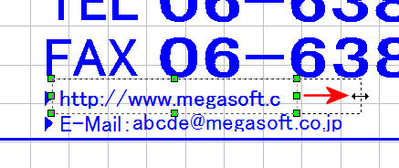 2. 文字枠のハンドルをドラッグして表示範囲を広げます。