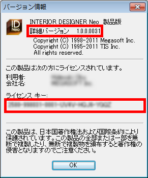 製品の詳細情報をヘルプメニューから確認することができます。「バージョン情報」とは、ソフトが最新の状態に更新されているかどうか(アップデート)を確認するために、サポート時にお尋ねする場合があります。 ※「ライセンスキー」や「ライセンス認証」が完了しているかどうかもここで確認できます。