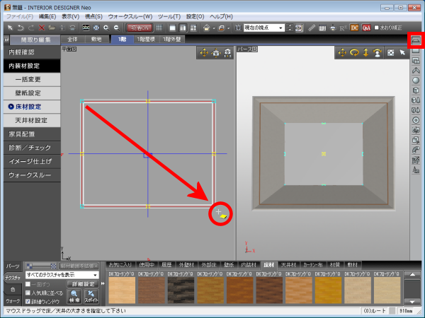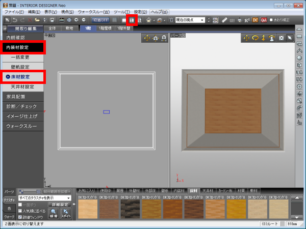 [形状作成パレット]の[床・天井ボタン]をクリックします。