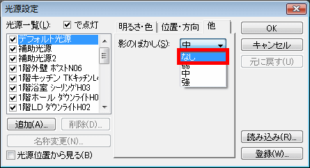 ■現象3D画面でパース図を印刷、イメージ保存すると印刷結果、保存結果が真っ黒になる。 ■原因グラフィックスライブラリの設定が「DirectX」モードで「影を落とす」が有効になっている場合、パソコンに搭載されているビデオカードの性能によっては、結果が正常に出力されません。 ■対処方法
