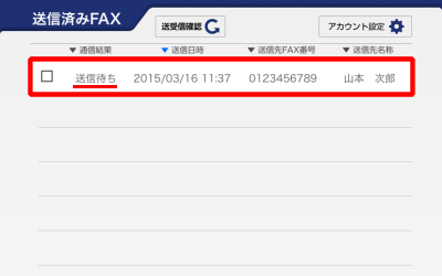 [送信済みFAX]画面に切り替えます。