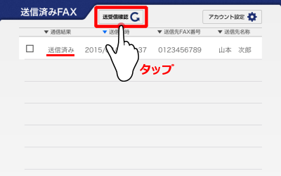 しばらくしてから[送受信確認]をタップします。