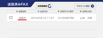 「STARFAX 16」側で送信が終了していると、[通信結果]が「送信済み」に変わります。