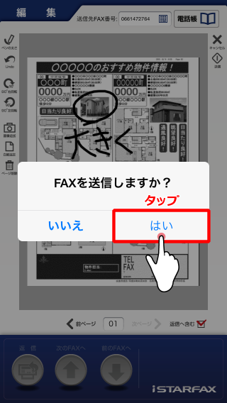 「FAXを送信しますか?」と表示されたら[はい]をタップします。