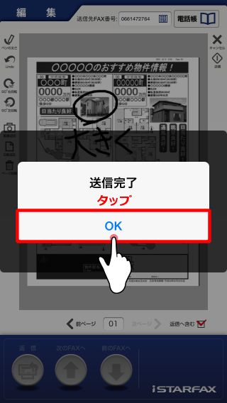 編集したいページにフリーハンドで書き込んで[送信]ボタンをタップします。