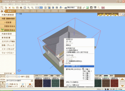 [テクスチャ設定]ウィンドウを閉じて、ナビ[外観・屋根材設定]の[屋根材を貼る]を選択して元の階層に戻ります。