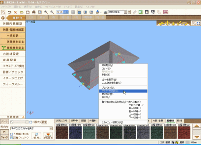 屋根面の階層へ移動するため、屋根をクリックして選択し、右クリックして[このパーツ階層へ移る]を選択します。
