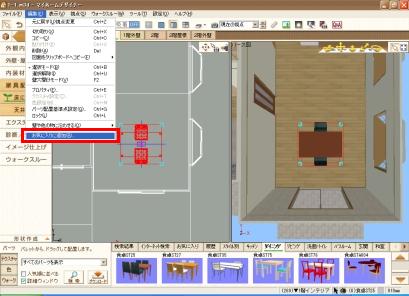 ナビの [ 家具配置 ] − [ 床に置く ] を選択します。