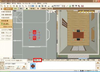 パーツパレットの [ ダイニング ] タブの「食卓ST25」を配置します。